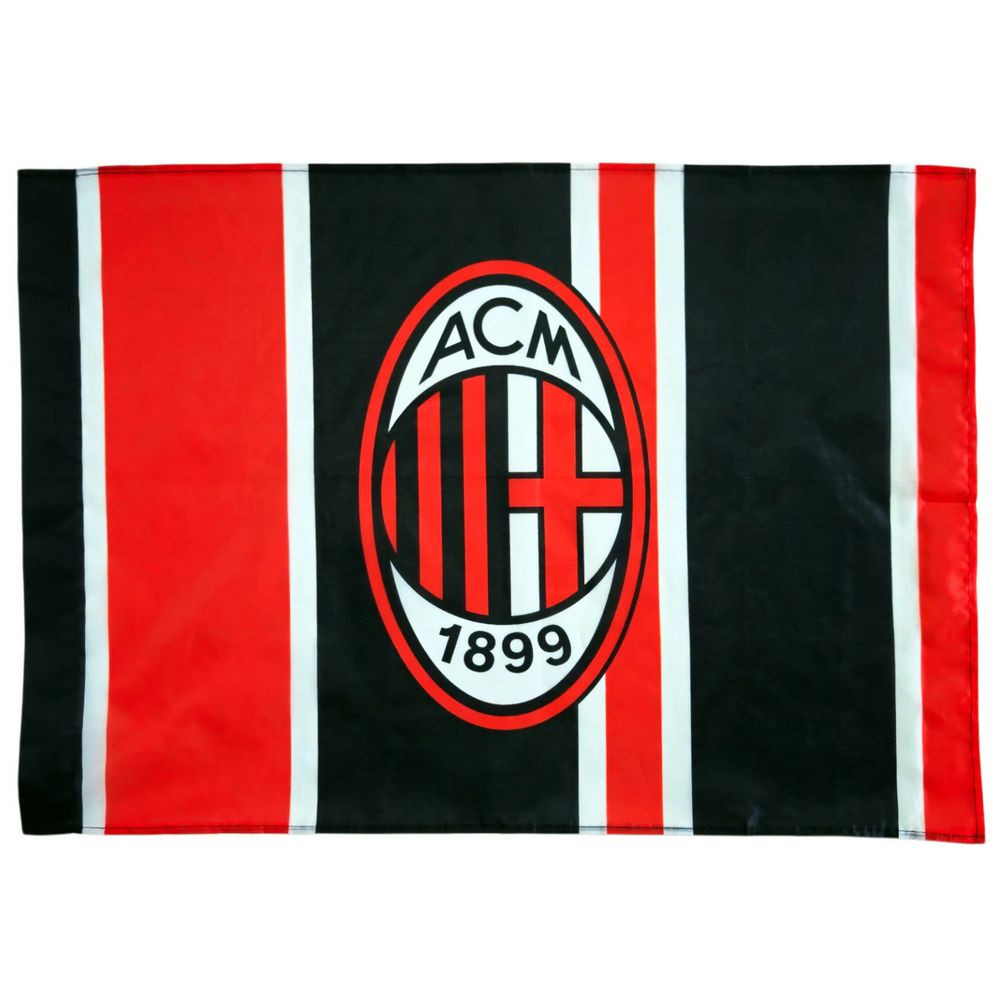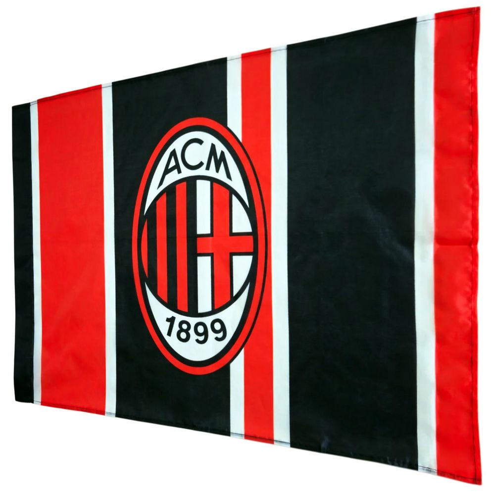 Nagyméretű AC Milan zászló 100x140 cm-ben igazi drukkereknek! Piros-fekete csíkos dizájn ACM címerrel és 1899-es évszakkal – ideális meccsekre vagy dekorációra. Rendeld meg most a Milan-szenvedélyed kifejezésére!