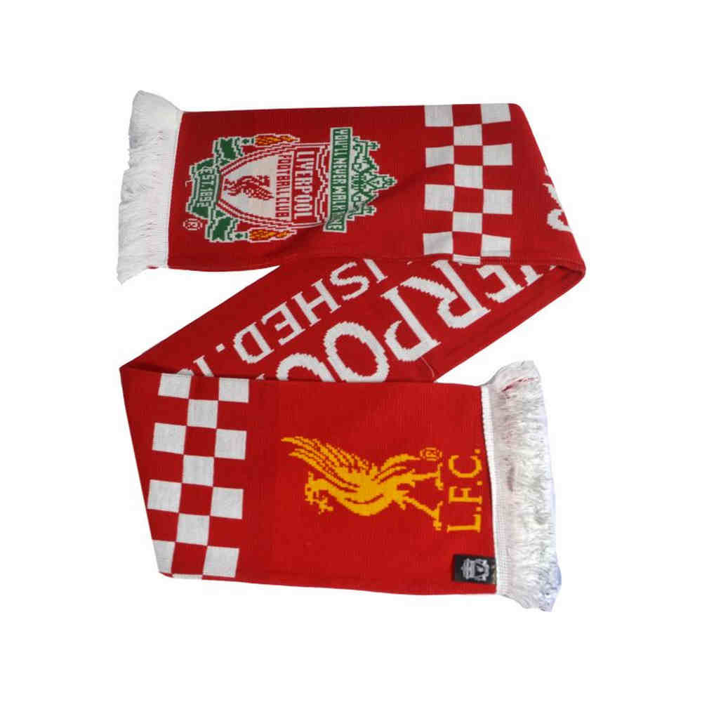 Liverpool FC piros-fehér kötött szurkolói sál, egyik végén fehér, másik végén sárga Liverbird címerrel díszítve. Egyedi dizájnjának köszönhetően feltűnő és stílusos viselet meccsnapon vagy a mindennapokban. Hivatalos, licencelt termék, tartós és kényelmes anyagból, klasszikus bordázott rojtokkal.